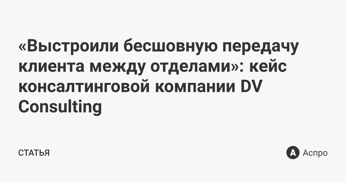 «Выстроили бесшовную передачу клиента между отделами»: кейс консалтинговой компании DV Consulting