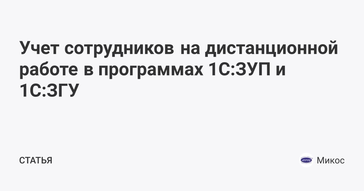 Учет сотрудников на дистанционной работе в программах 1С:ЗУП и 1С:ЗГУ