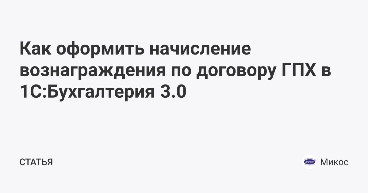 Как оформить начисление вознаграждения по договору ГПХ в 1С:Бухгалтерия 3.0