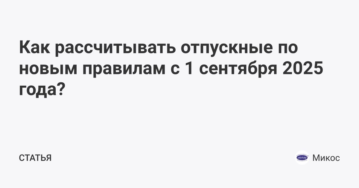 Как рассчитывать отпускные по новым правилам с 1 сентября 2025 года? | Микос (@mikos) | Мегасреда | 24.09.25, 05:24:00