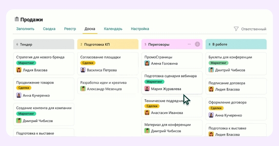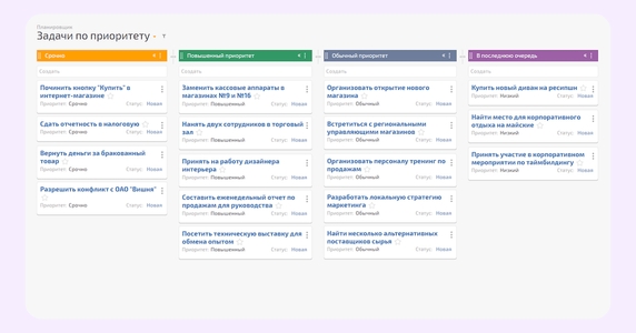 - Подключать автоматизацию: правила для перемещения карточек, изменения статусов и назначения исполнителей;