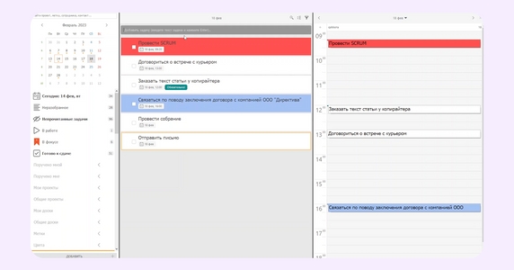 - Удобный календарь для планирования дня, недели и месяца. Есть «Мои задачи на сегодня» — список, который помогает сфокусироваться;