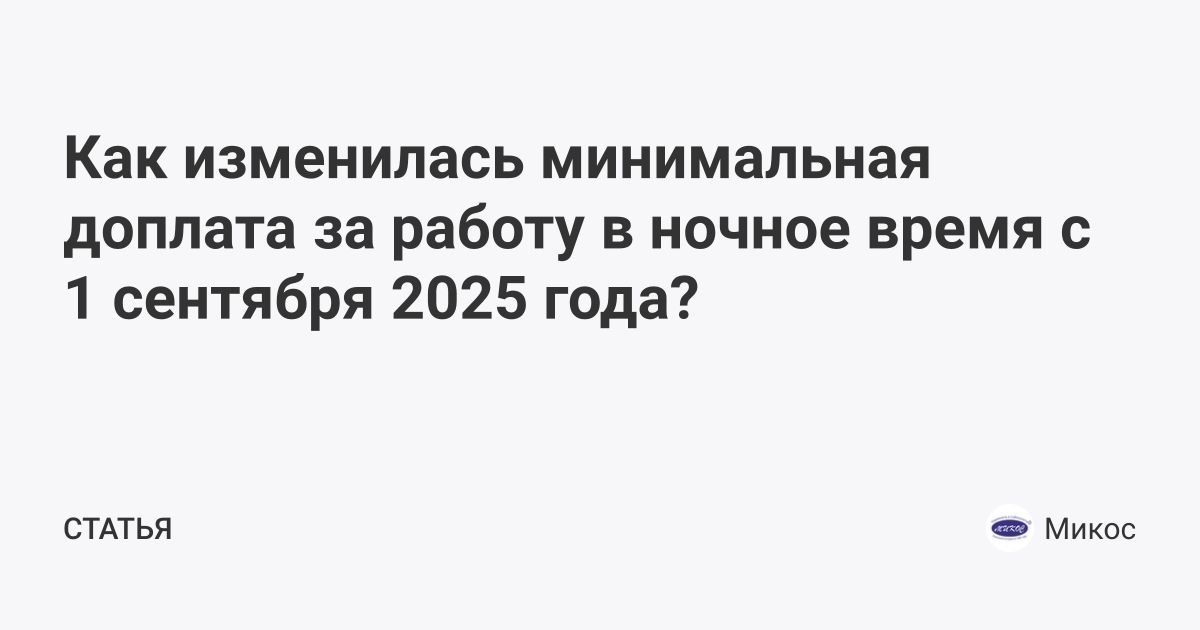 Как изменилась минимальная доплата за работу в ночное время с 1 сентября 2025 года?