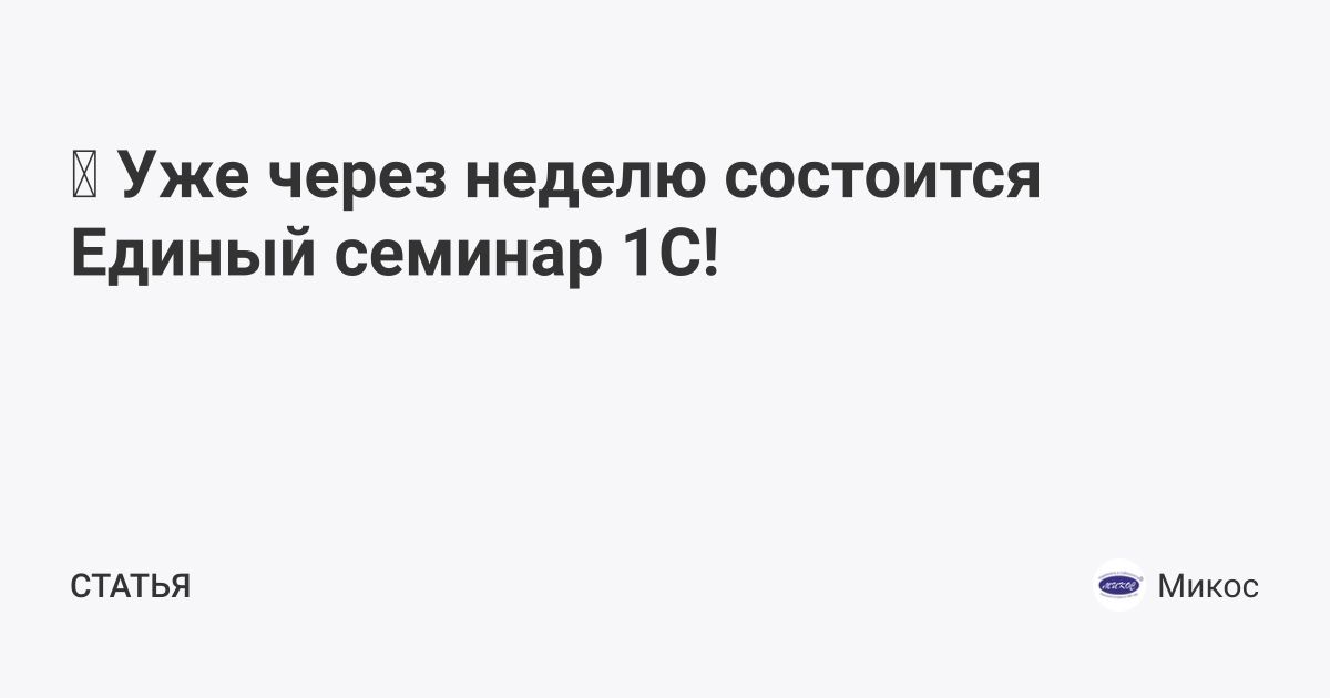 🎉 Уже через неделю состоится Единый семинар 1С! | Микос (@mikos) | Мегасреда | 25.09.25, 09:08:29