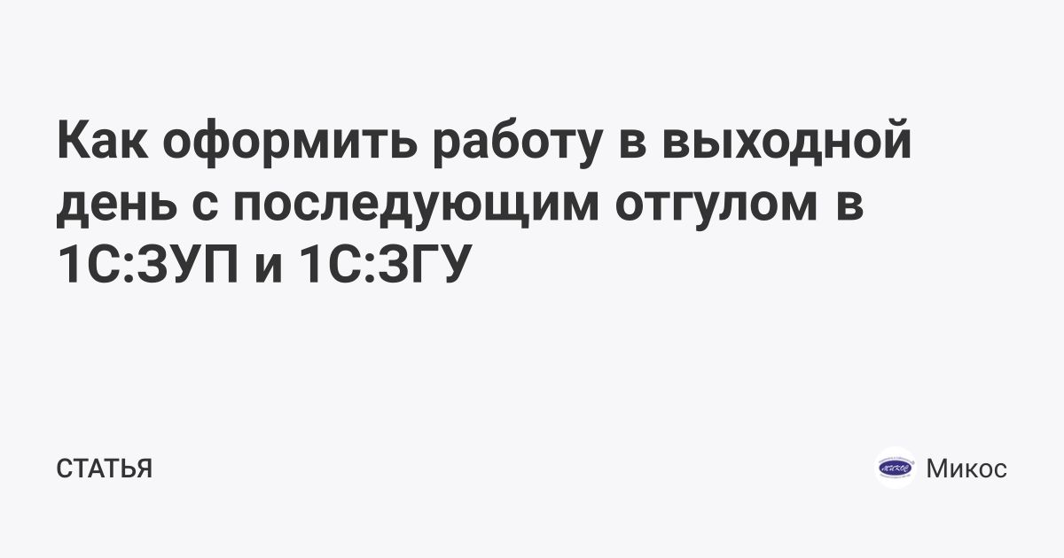 Как оформить работу в выходной день с последующим отгулом в 1С:ЗУП и 1С:ЗГУ