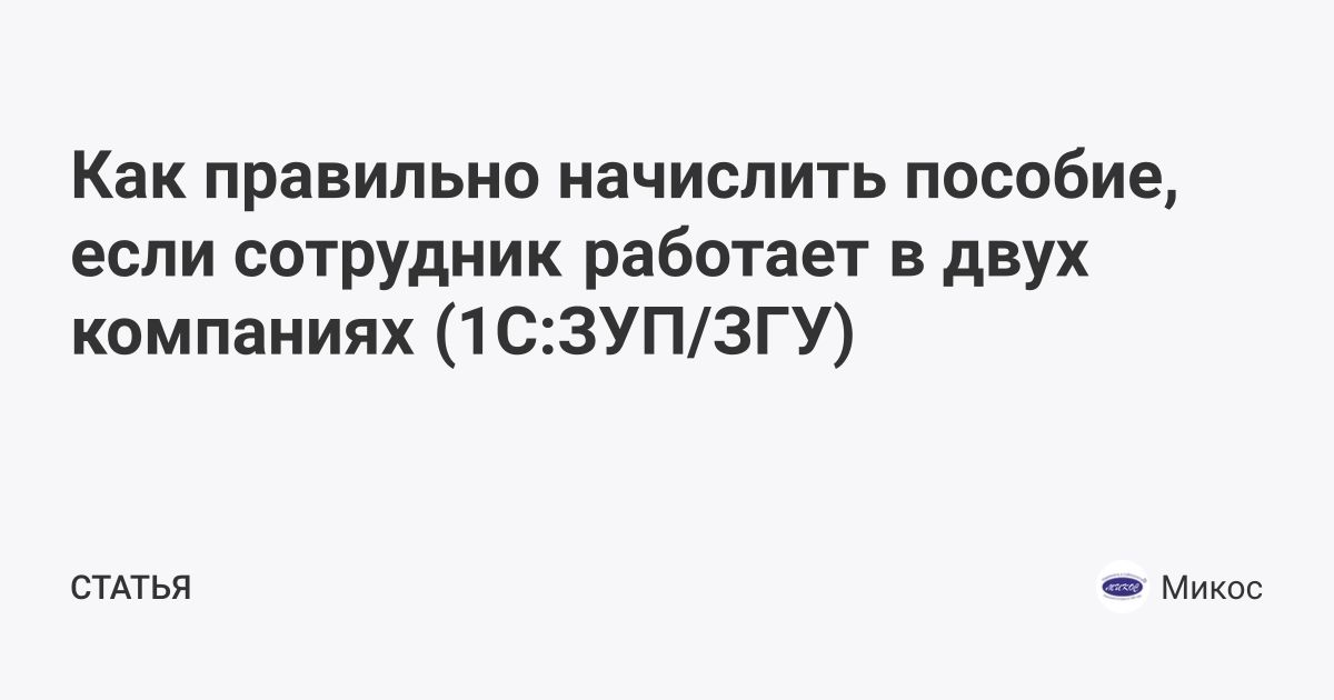 Как правильно начислить пособие, если сотрудник работает в двух компаниях (1С:ЗУП/ЗГУ)