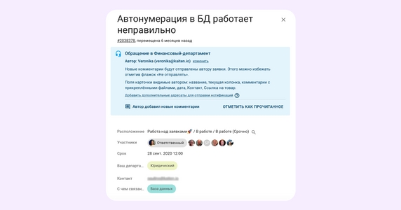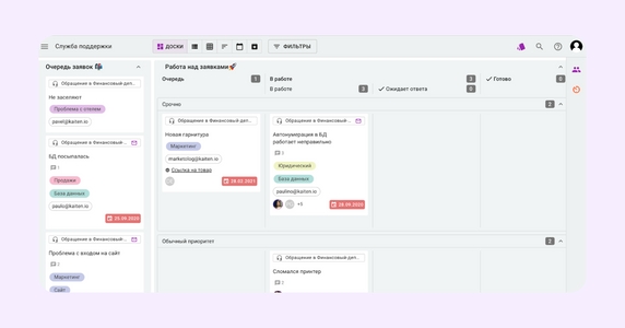 Запросы автоматически становятся карточками на доске в Kaiten — с ними работают точно так же как и с другими карточками на досках.