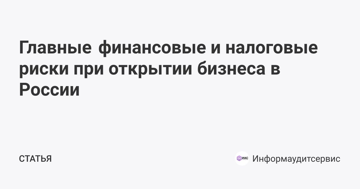 Читайте подробнее о главных финансовых и налоговых рисках при открытии бизнеса в России на сайте Информаудитсервис: https://i-ias.ru/press/publikatsii-v-smi/finansovye-i-nalogovye-riski-pri-otkrytii-biznesa-v-rossii/