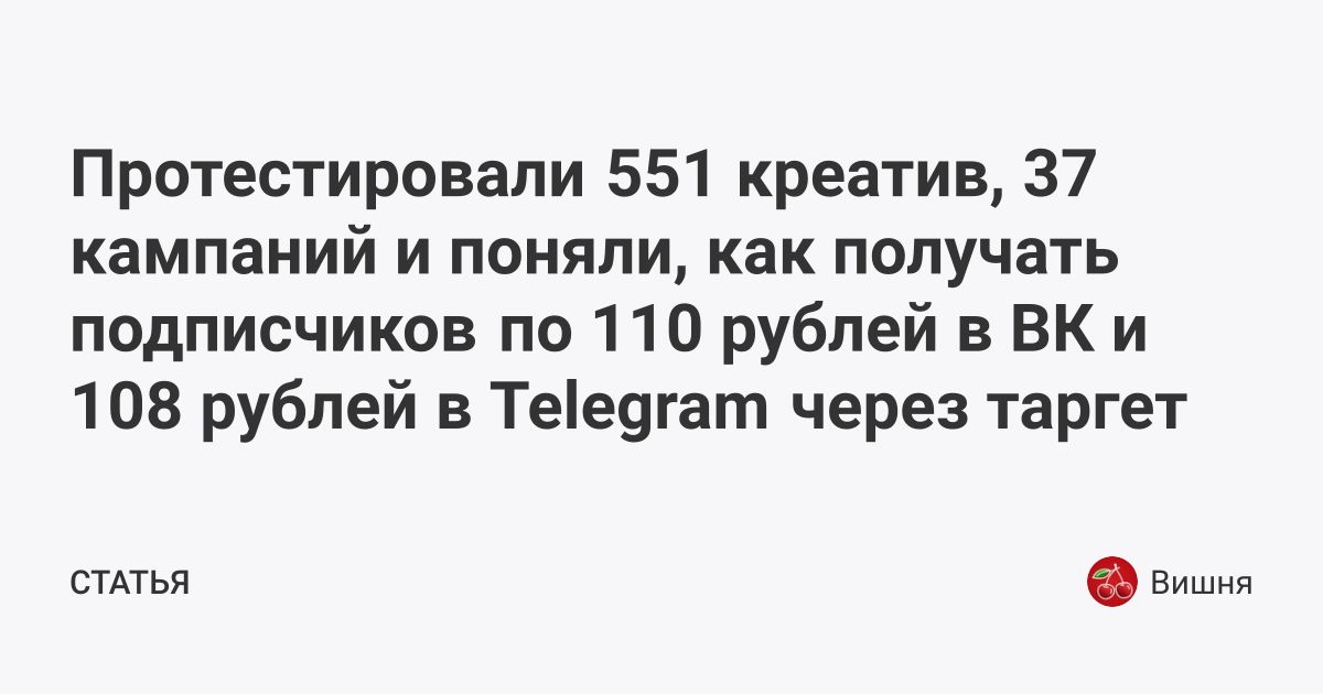 Протестировали 551 креатив, 37 кампаний и поняли, как получать подписчиков по 110 рублей в ВК и 108 рублей в Telegram через таргет
