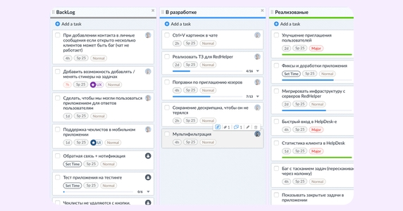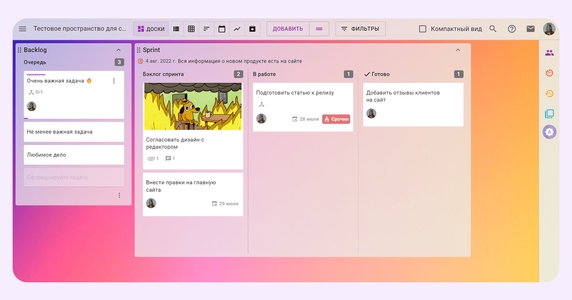 - Прозрачность процессов — видно, кто над чем работает и какие задачи в приоритете прямо сейчас.
