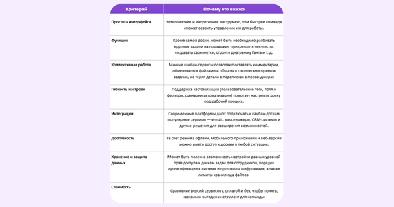 Выбор канбан-сервиса также зависит от масштаба задач: для личного планирования подойдут простые и бесплатные решения, а для корпоративной работы и построения сложных процессов — инструменты с продвинутыми функциями для командной работы.