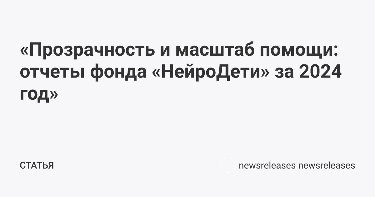 «Прозрачность и масштаб помощи: отчеты фонда «НейроДети» за 2024 год»