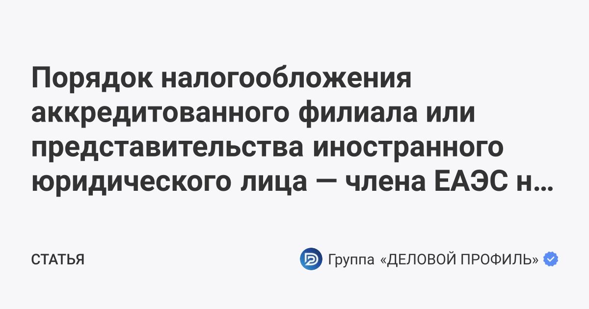 Порядок налогообложения аккредитованного филиала или представительства иностранного юридического лица — члена ЕАЭС на территории РФ