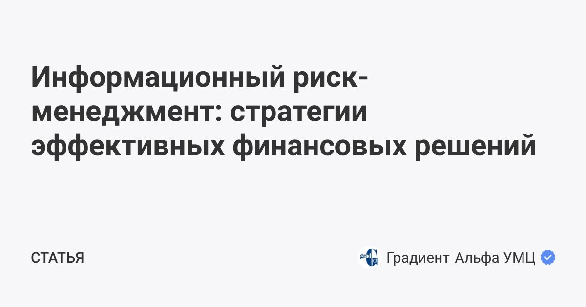 Информационный риск-менеджмент: стратегии эффективных финансовых решений