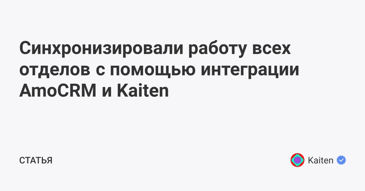 8 лет интегрируем AmoCRM с различными сервисами. Компания неоднократно занимала призовые места в CRM-рейтингах, в том числе и первое место за самое технологичное внедрение amoCRM. В кейсе расскажет, как прошла интеграция Amo и Kaiten, чем это удобно и какой получился результат.