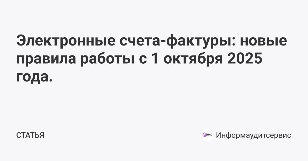 Электронные счета-фактуры: новые правила работы с 1 октября 2025 года.