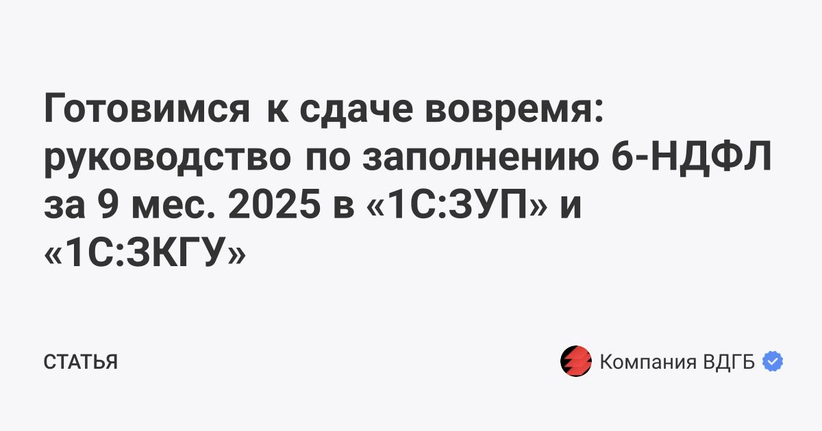 Готовимся к сдаче вовремя: руководство по заполнению 6-НДФЛ за 9 мес. 2025 в «1С:ЗУП» и «1С:ЗКГУ»