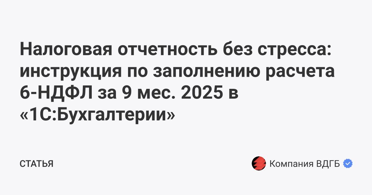 Налоговая отчетность без стресса: инструкция по заполнению расчета 6-НДФЛ за 9 мес. 2025 в «1С:Бухгалтерии»