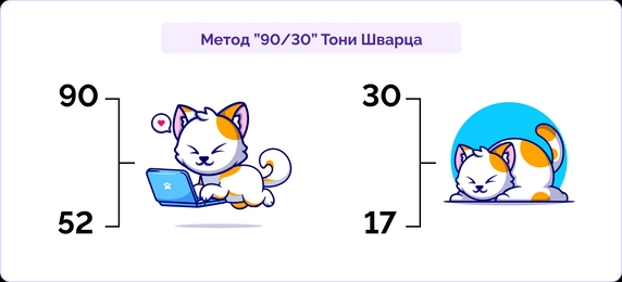 Подход, предложенный бизнесменом и журналистом Т. Шварцем, напоминает технику «помидора», но использует другие временные интервалы.