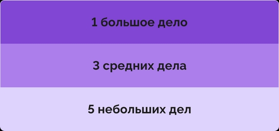 - разделение дня на три части помогает справляться с различными задачами — как текущими, так и долгосрочными;