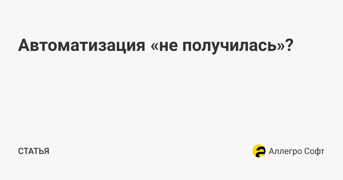 Статья 27.10.25, 15:06 Поделиться Автоматизация «не получилась»? Аллегро Софт Материал доступен только зарегистрированным пользователям Изучить публикацию могут только зарегистрированные пользователи Войдите Зарегистрируйтесь