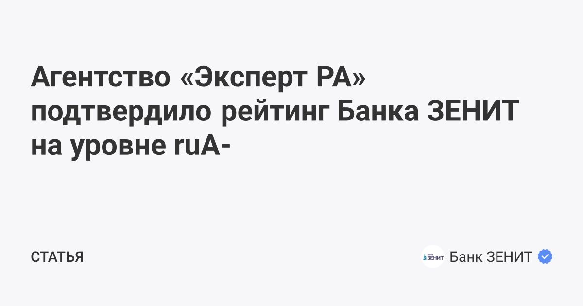Агентство «Эксперт РА» подтвердило рейтинг Банка ЗЕНИТ на уровне ruA- | Банк ЗЕНИТ (@zenit@) | Мегасреда | 05.11.25, 11:52:25