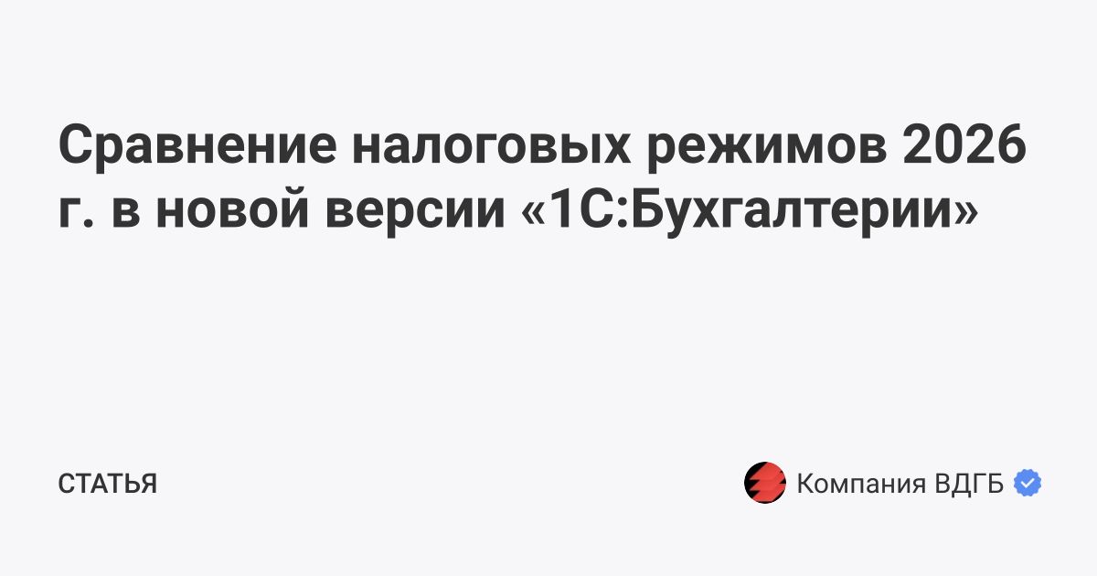 Сравнение налоговых режимов 2026 г. в новой версии «1С:Бухгалтерии»