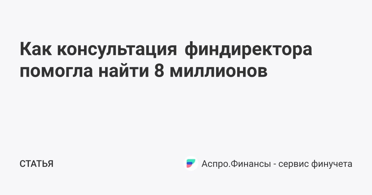 Как консультация финдиректора помогла найти 8 миллионов