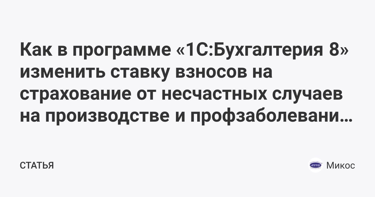 Как в программе «1С:Бухгалтерия 8» изменить ставку взносов на страхование от несчастных случаев на производстве и профзаболеваний?