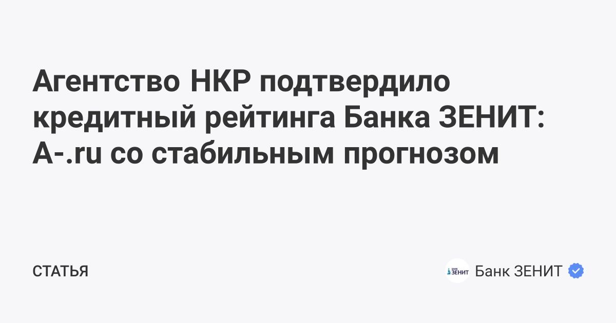 Агентство НКР подтвердило кредитный рейтинга Банка ЗЕНИТ: A-.ru со стабильным прогнозом