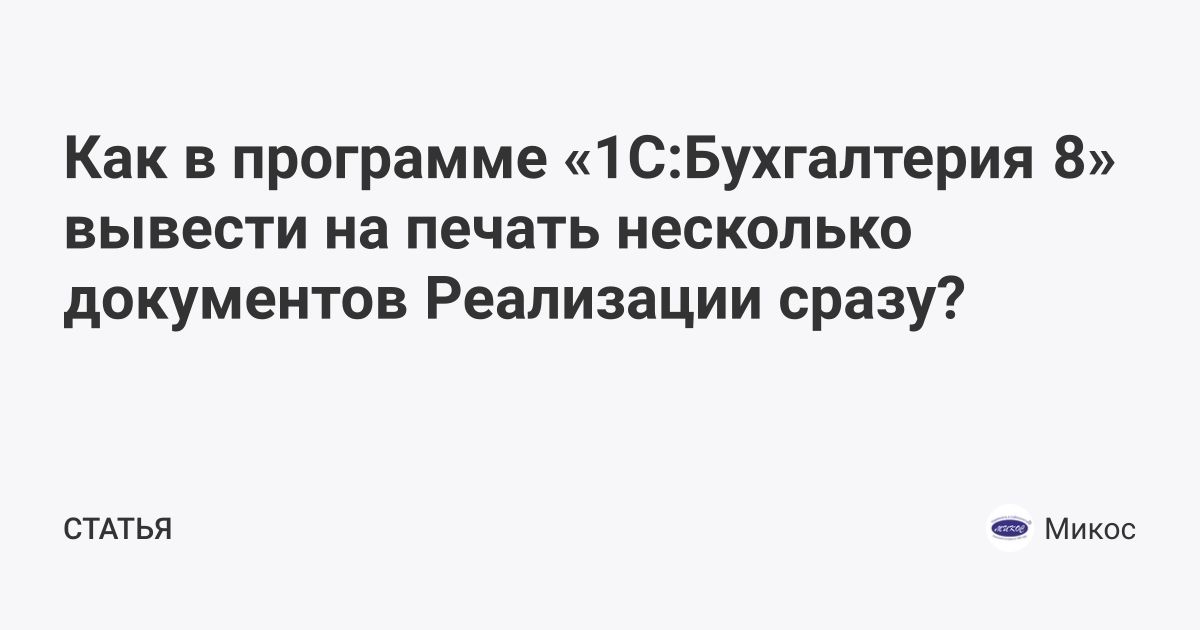 Как в программе «1С:Бухгалтерия 8» вывести на печать несколько документов Реализации сразу?