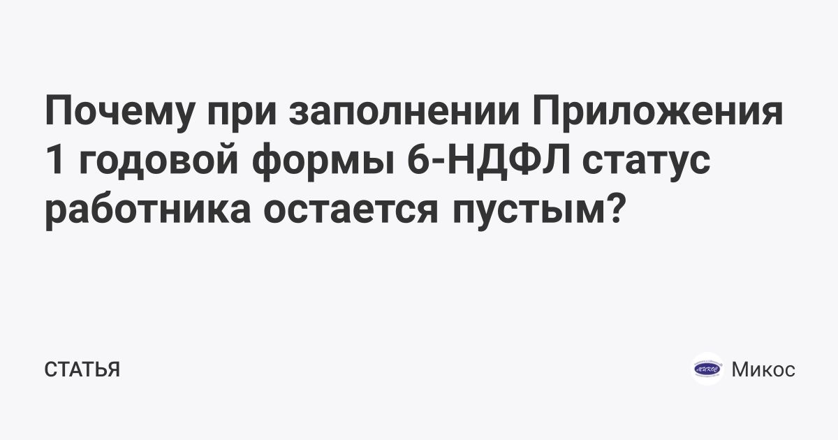 Почему при заполнении Приложения 1 годовой формы 6-НДФЛ статус работника остается пустым?