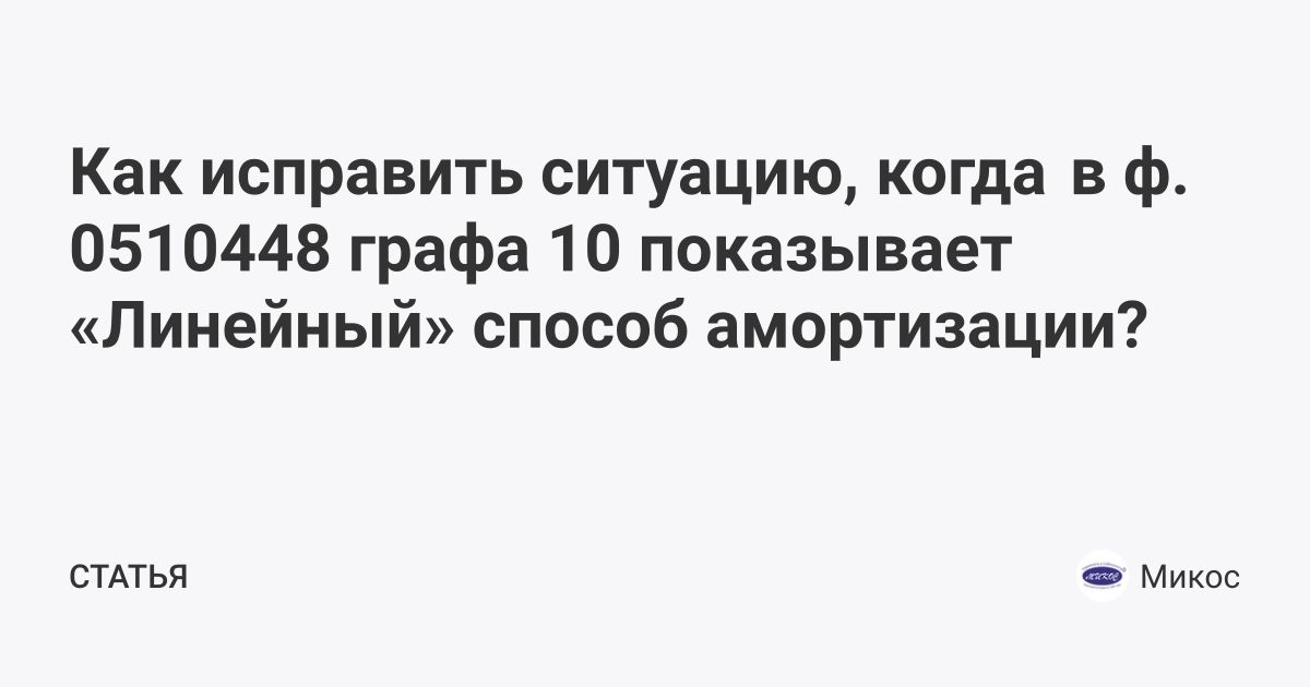 Как исправить ситуацию, когда в ф. 0510448 графа 10 показывает «Линейный» способ амортизации?
