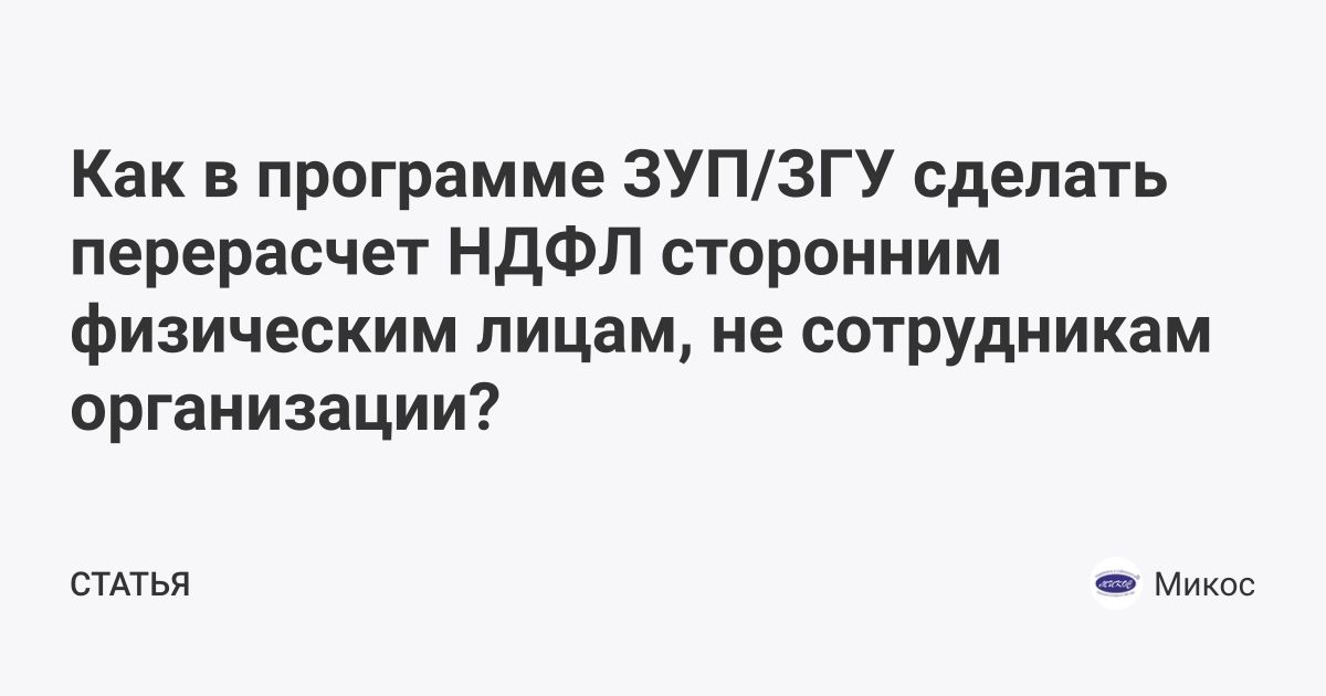 Как в программе ЗУП/ЗГУ сделать перерасчет НДФЛ сторонним физическим лицам, не сотрудникам организации?