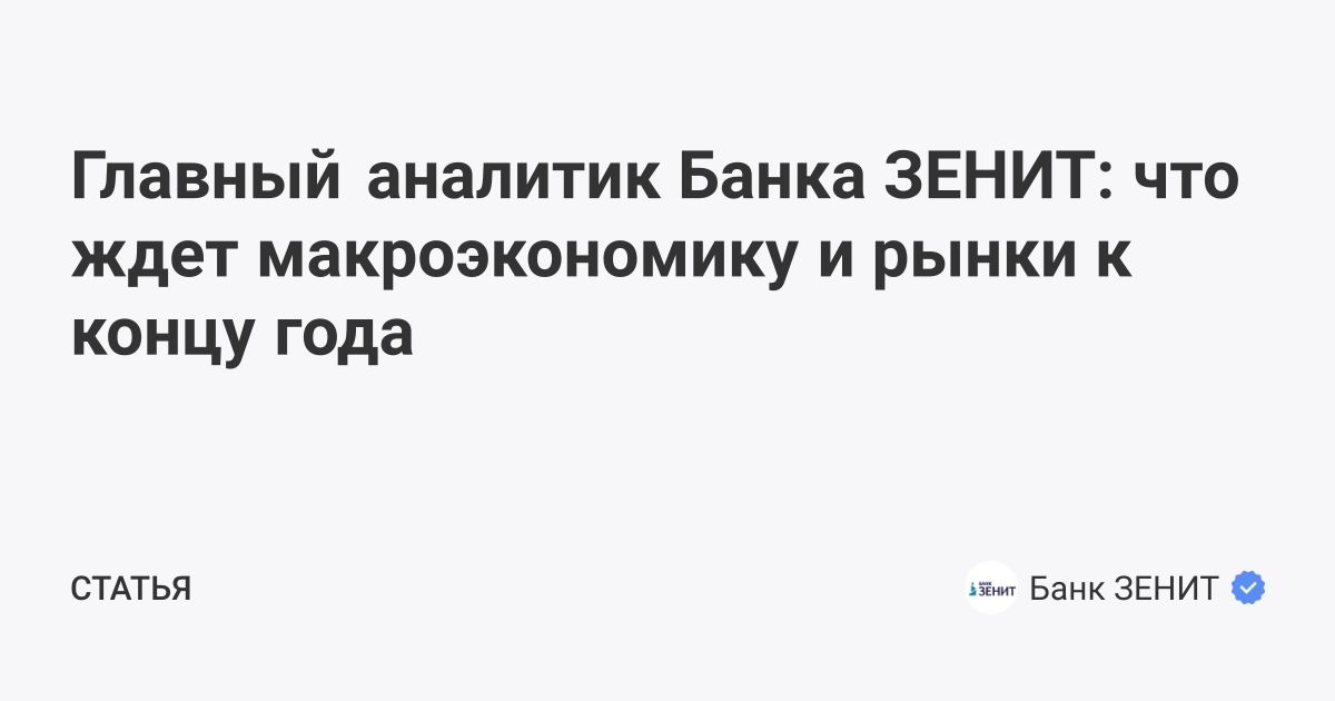 Главный аналитик Банка ЗЕНИТ: что ждет макроэкономику и рынки к концу года