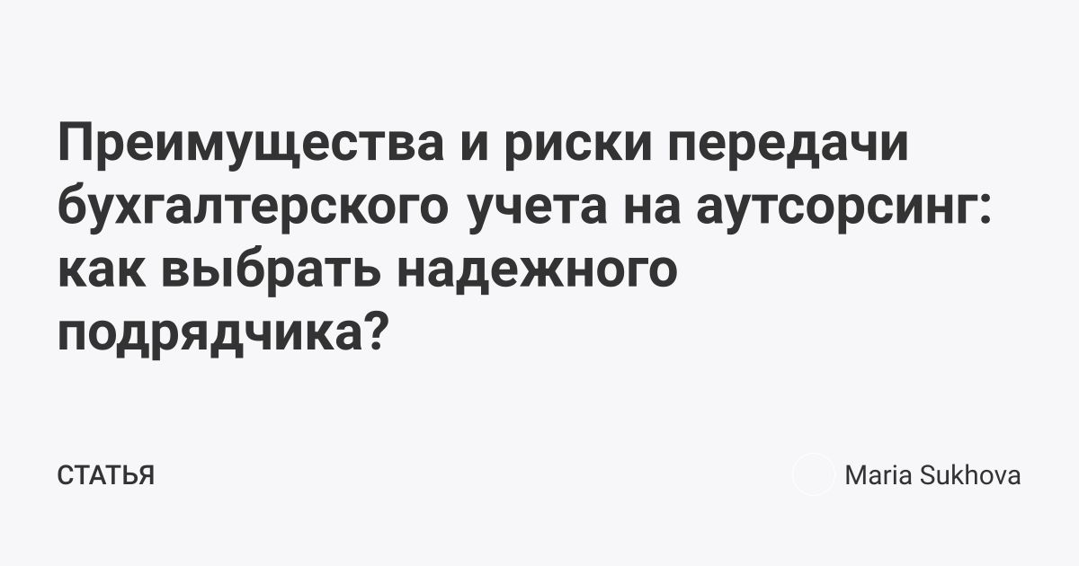 Преимущества и риски передачи бухгалтерского учета на аутсорсинг: как выбрать надежного подрядчика?