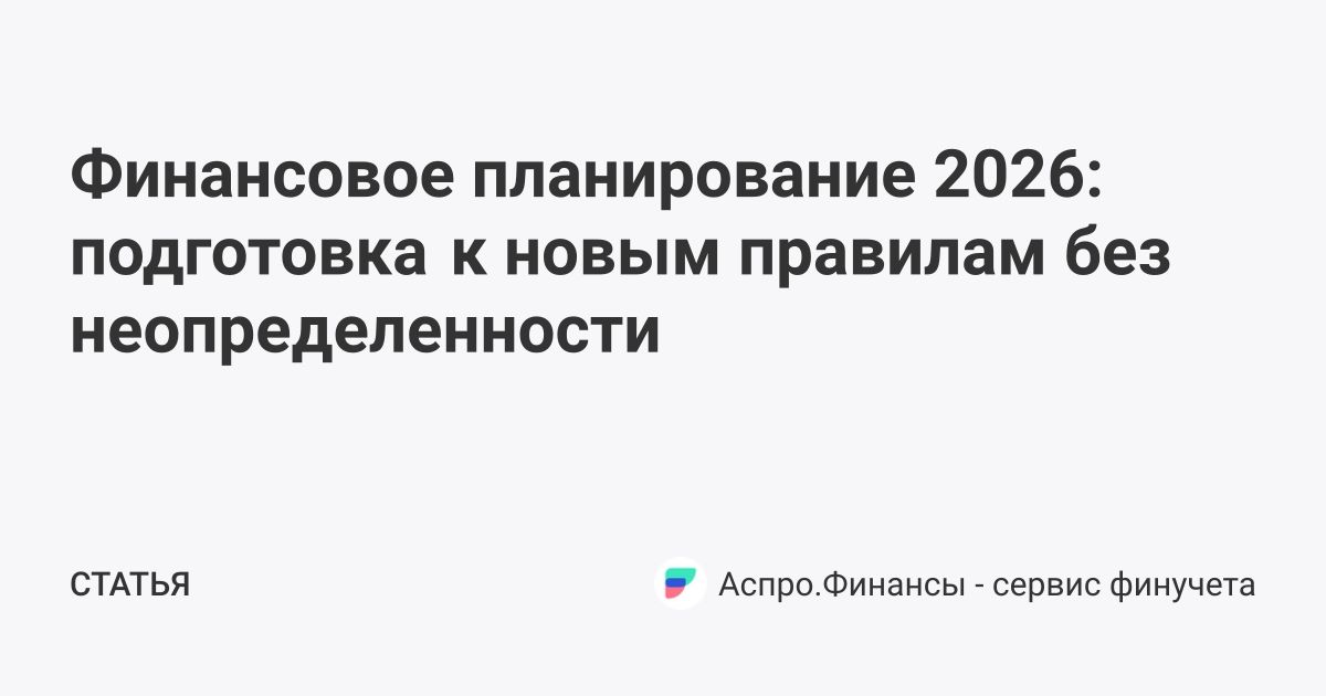 Финансовое планирование 2026: подготовка к новым правилам без неопределенности