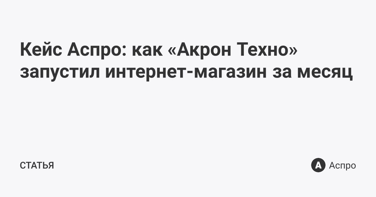 Кейс Аспро: как «Акрон Техно» запустил интернет-магазин за месяц