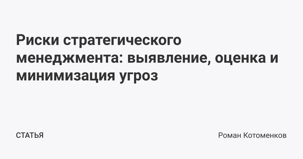 Риски стратегического менеджмента: выявление, оценка и минимизация угроз