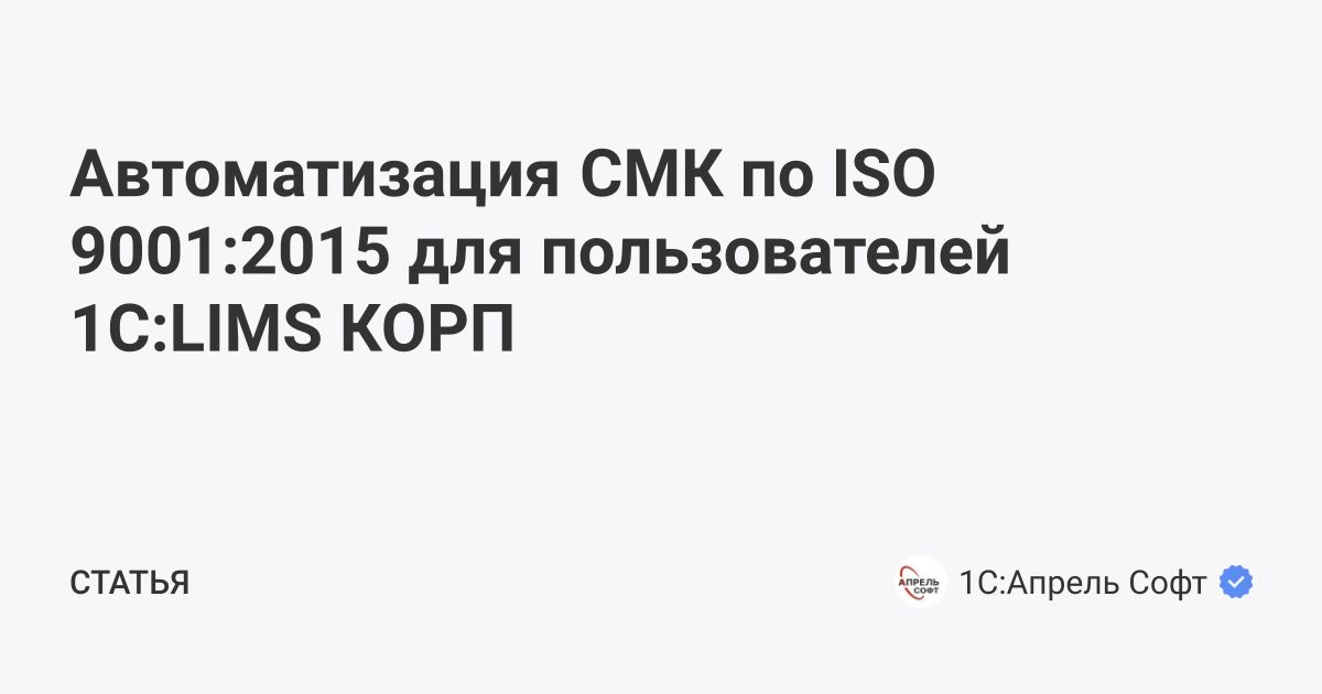 Автоматизация СМК по ISO 9001:2015 для пользователей 1С:LIMS КОРП