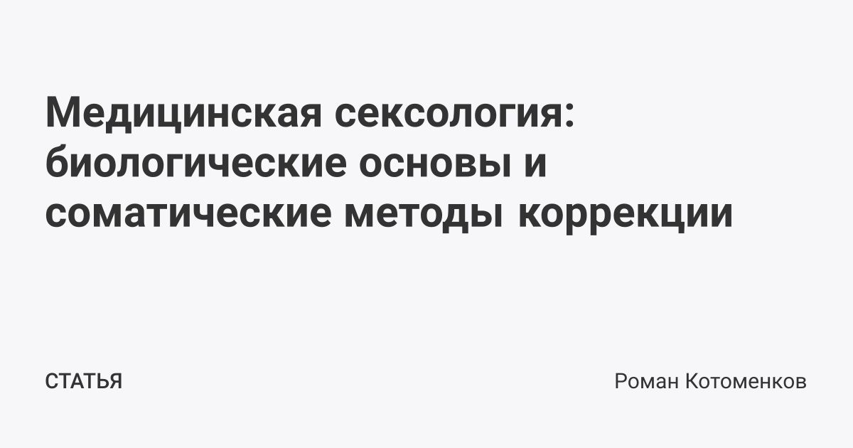 Медицинская сексология: биологические основы и соматические методы коррекции