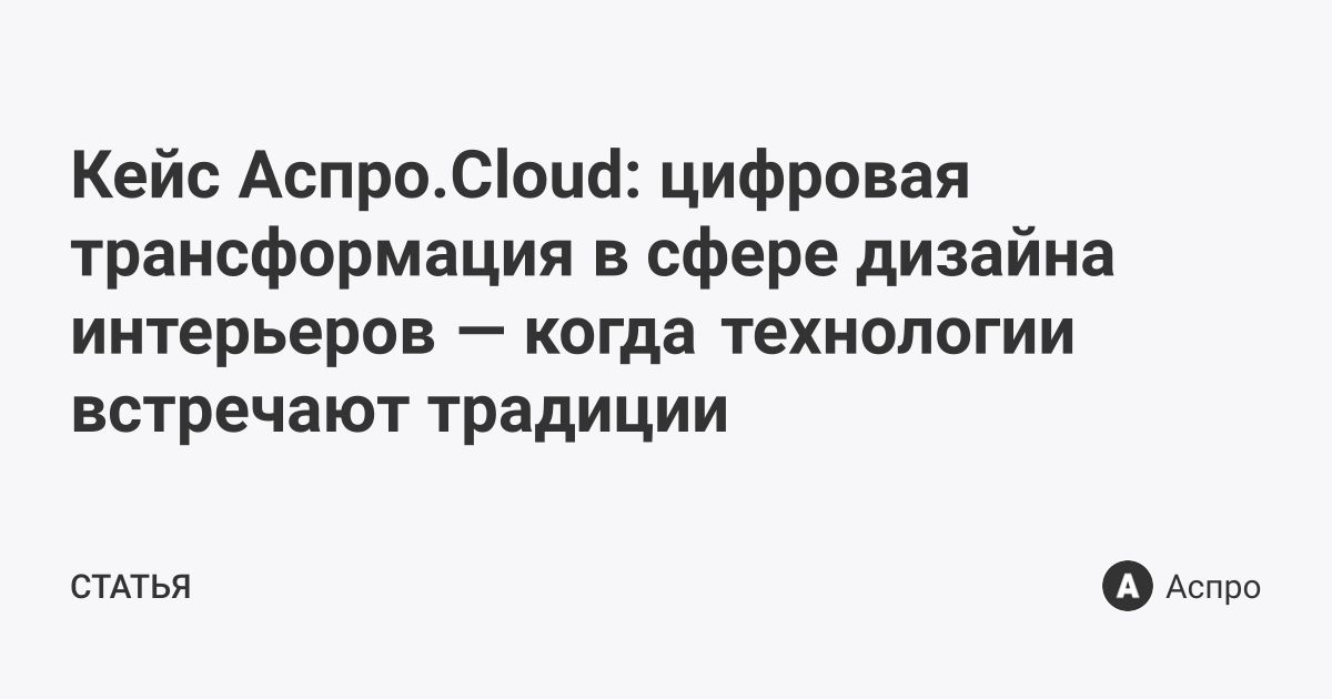 Кейс Аспро.Cloud: цифровая трансформация в сфере дизайна интерьеров — когда технологии встречают традиции