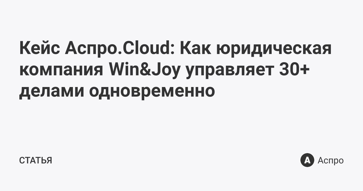 Кейс Аспро.Cloud: Как юридическая компания Win&Joy управляет 30+ делами одновременно