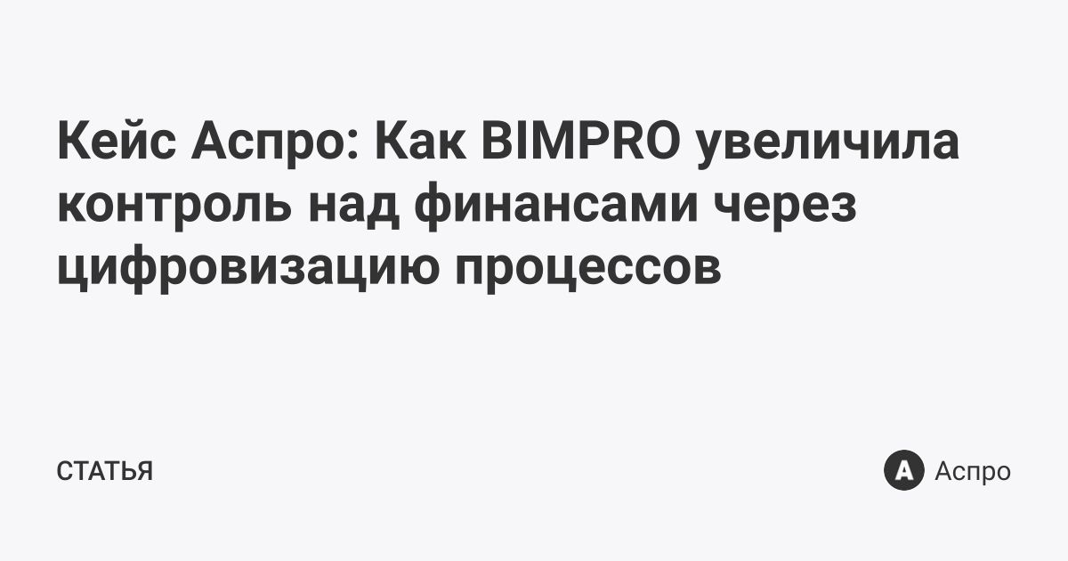 Кейс Аспро: Как BIMPRO увеличила контроль над финансами через цифровизацию процессов