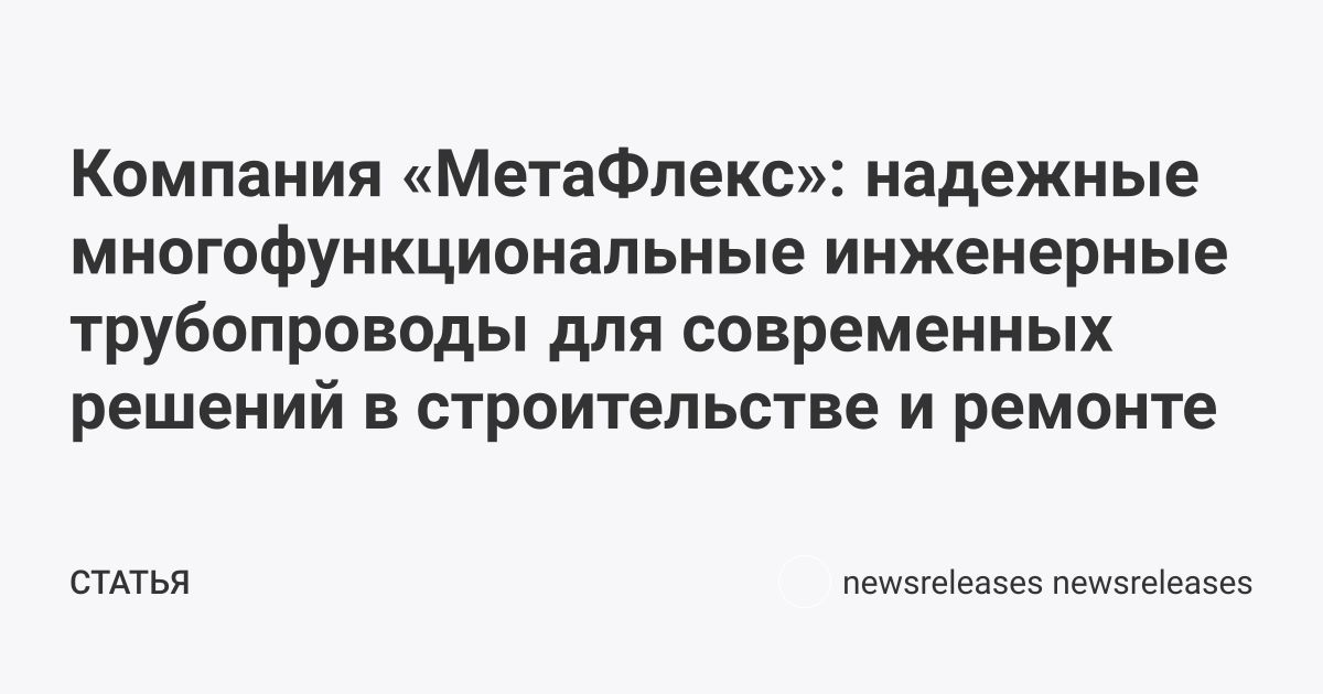 Компания «МетаФлекс»: надежные многофункциональные инженерные трубопроводы для современных решений в строительстве и ремонте
