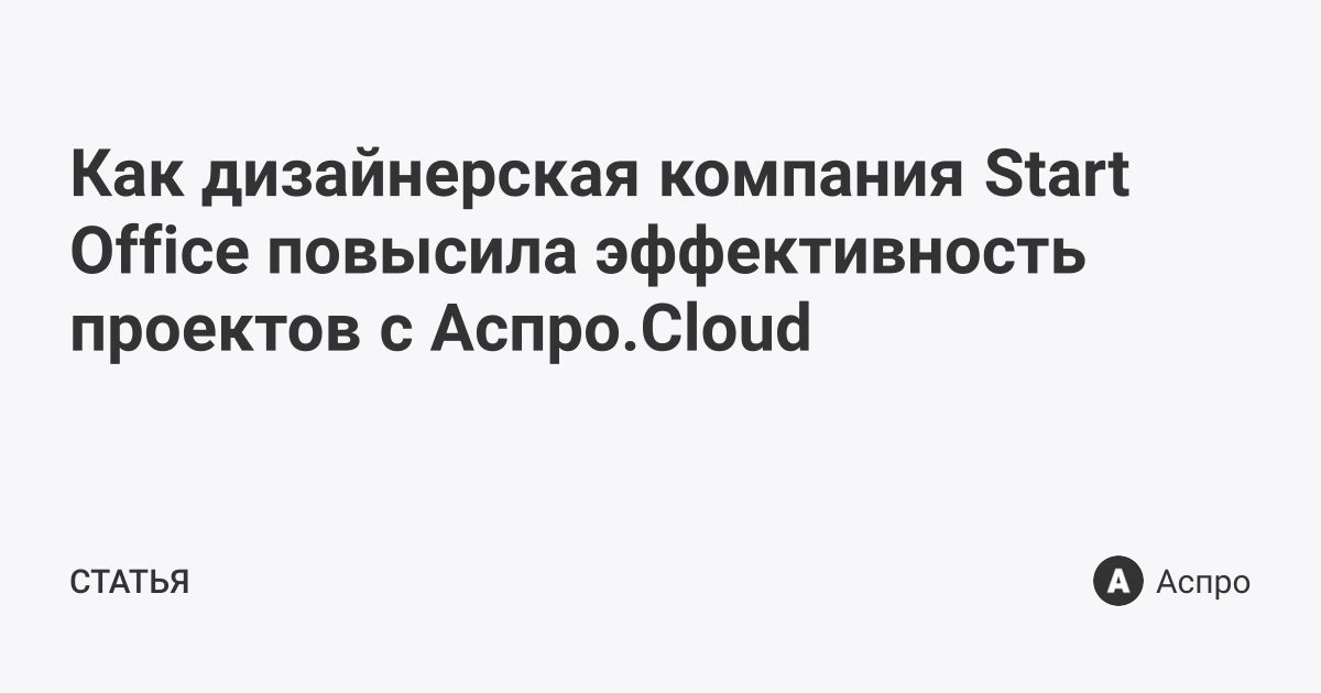 Как дизайнерская компания Start Office повысила эффективность проектов с Аспро.Cloud