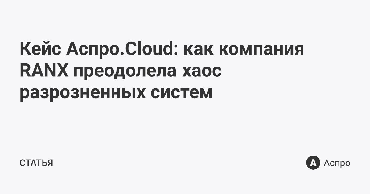 Кейс Аспро.Cloud: как компания RANX преодолела хаос разрозненных систем