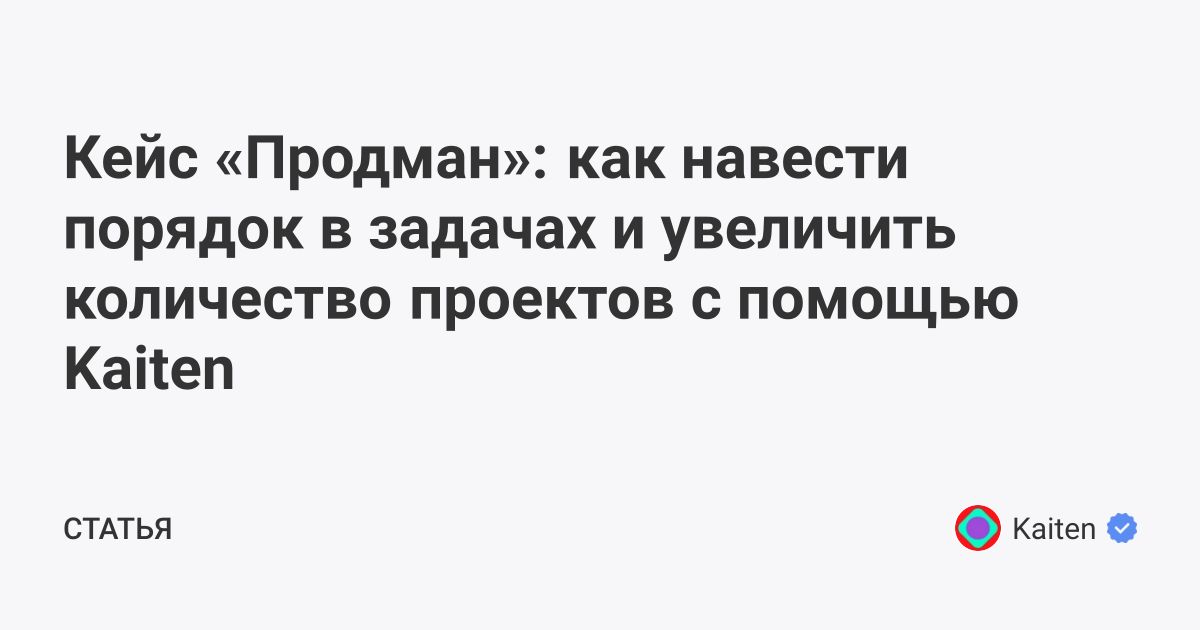 С Kaiten мы стали работать намного слаженнее, управление стало понятным и все процессы теперь под контролем. Мы планируем увеличить количество сотрудников и взять в работу больше проектов — теперь мы уверены, что справимся с такой нагрузкой и качество сервиса не пострадает.Генеральный директор «Продман», Павел Попов