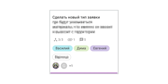 Команда использует метки, чтобы отмечать сотрудников на карточках задач. Заказчик, исполнитель и ответственные видны в интерфейсе в незаметных серых кружках. А цветные надписи хорошо видно и с первого взгляда на доску понятно, какие задачи относятся к тебе.