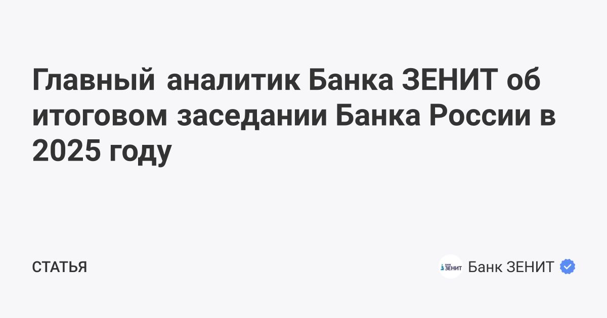 Главный аналитик Банка ЗЕНИТ об итоговом заседании Банка России в 2025 году